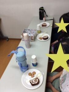 ということで、約15分間トレーニングをした後におやつの時間です✨