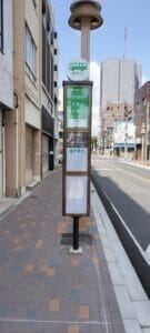 ①「松江」のバス停を背にして少し進むと、右側に「ソリス船堀」の看板が見えます。