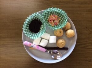 ポッキー・マシュマロ・チョコシュー、チョコソース・カラースプレーを用意します!