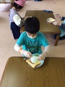 【スマートキッズプラス大島】 照り焼きチキンマヨトースト作り🍞