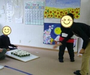 おやつを食べた後にはスタッフから教室のみんなへ🎁