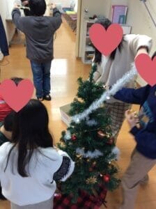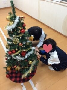 クリスマスツリーの飾りつけ・お片付けは余暇時間を使ってお手伝いをしてもらいました!