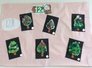 12月のカレンダー作りでは”微細運動をおこなう”ことを目的とし、