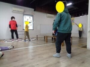 スタッフが作成した凧を使い教室内で簡単凧揚げを行いました^_^