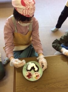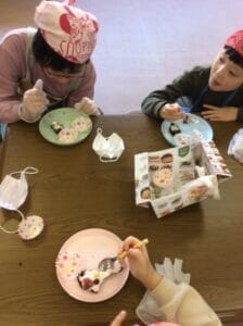 みんな集中してとてもきれいに生クリームを広げています🥄